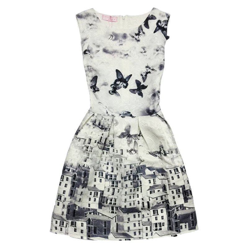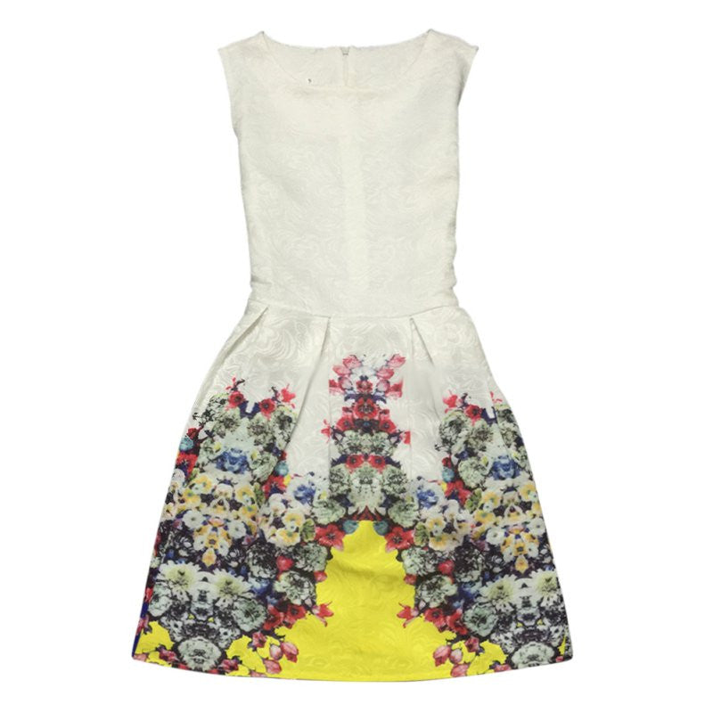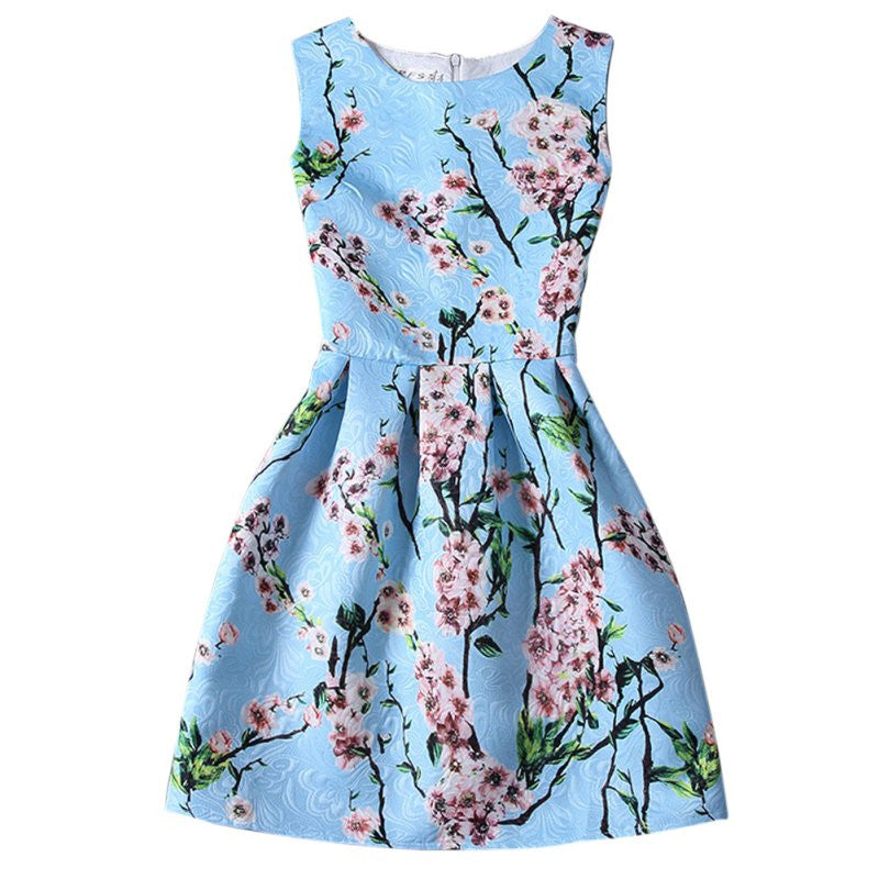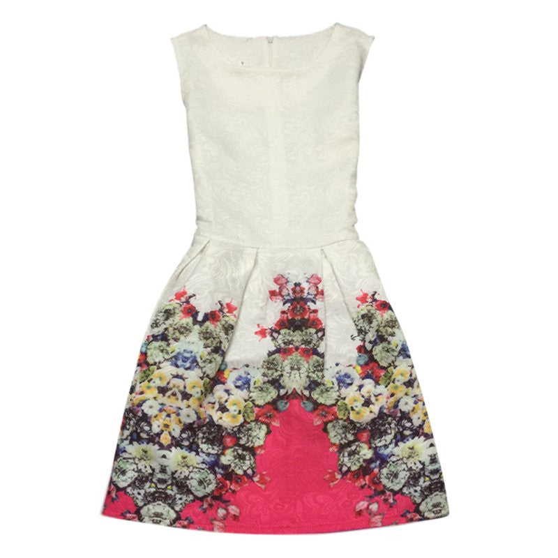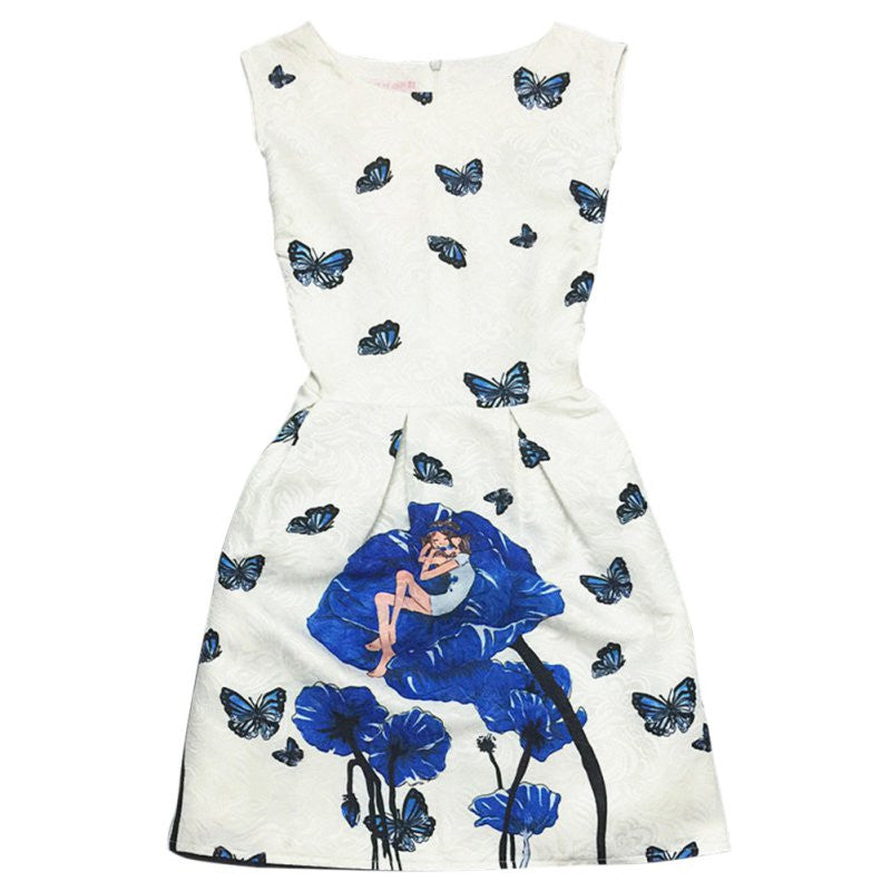 Women's Sleeveless Casual Sundress Flower Cotton Pleated Short Floral Mini Dress