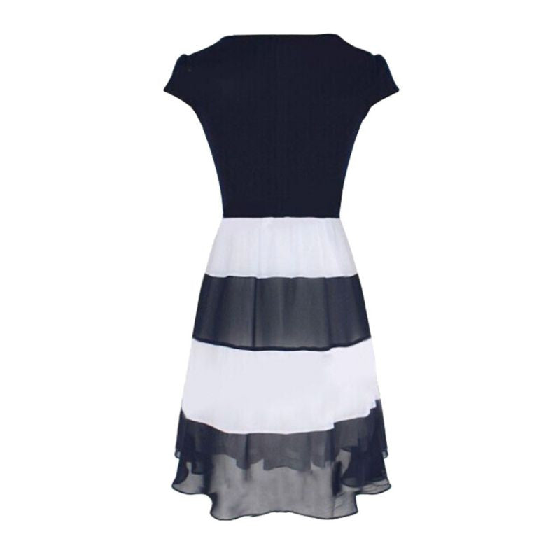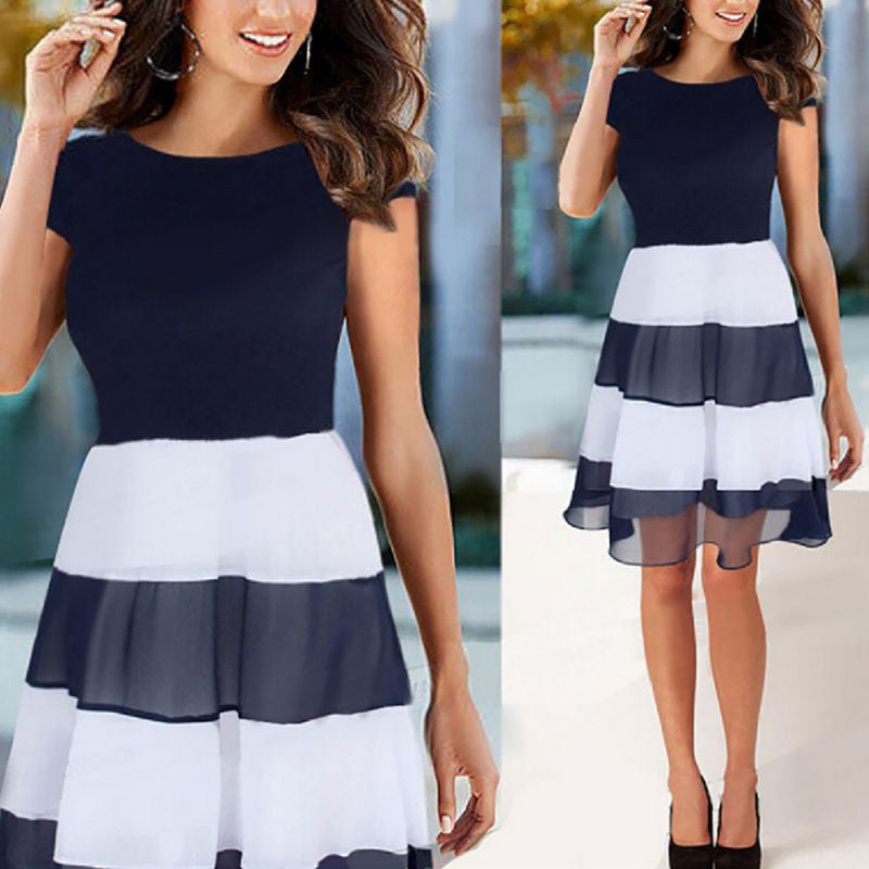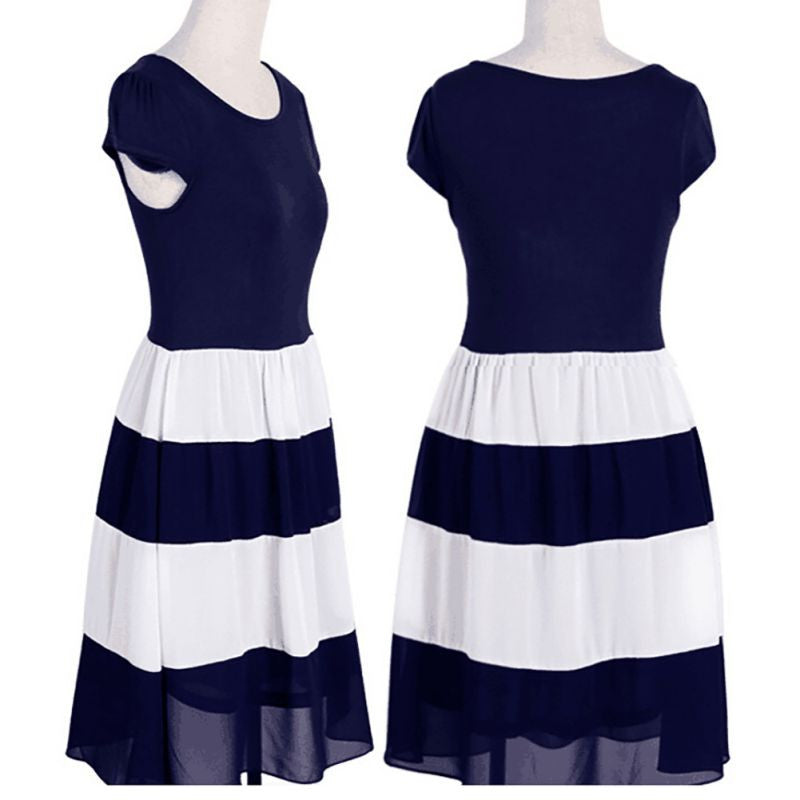 Women's Striped Chiffon Cocktail Party Skater Casual Work Pleated Dress