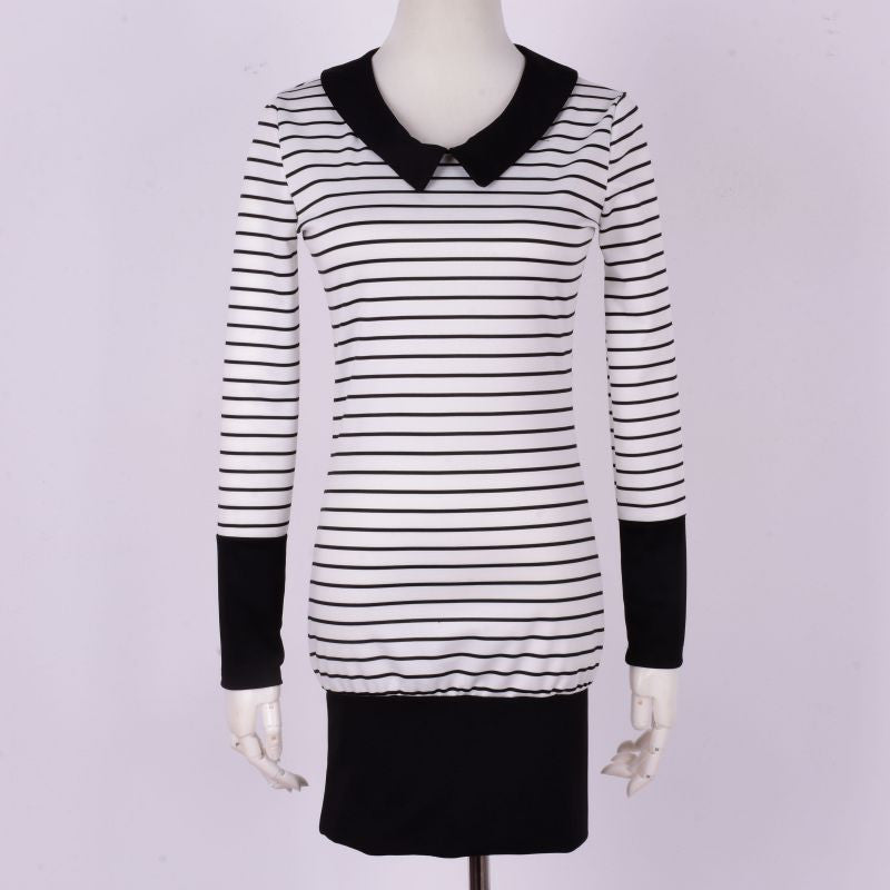 Womens Turn Down Collar Long Sleeve Stripe Bodycon Office Lady Pencil Mini Dress